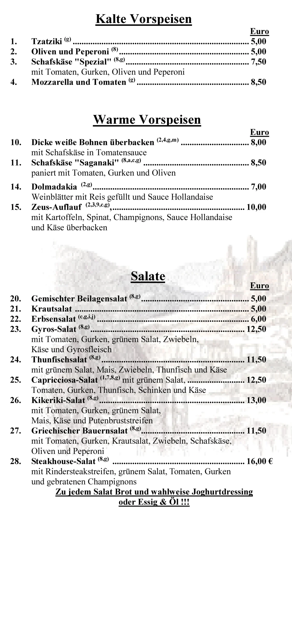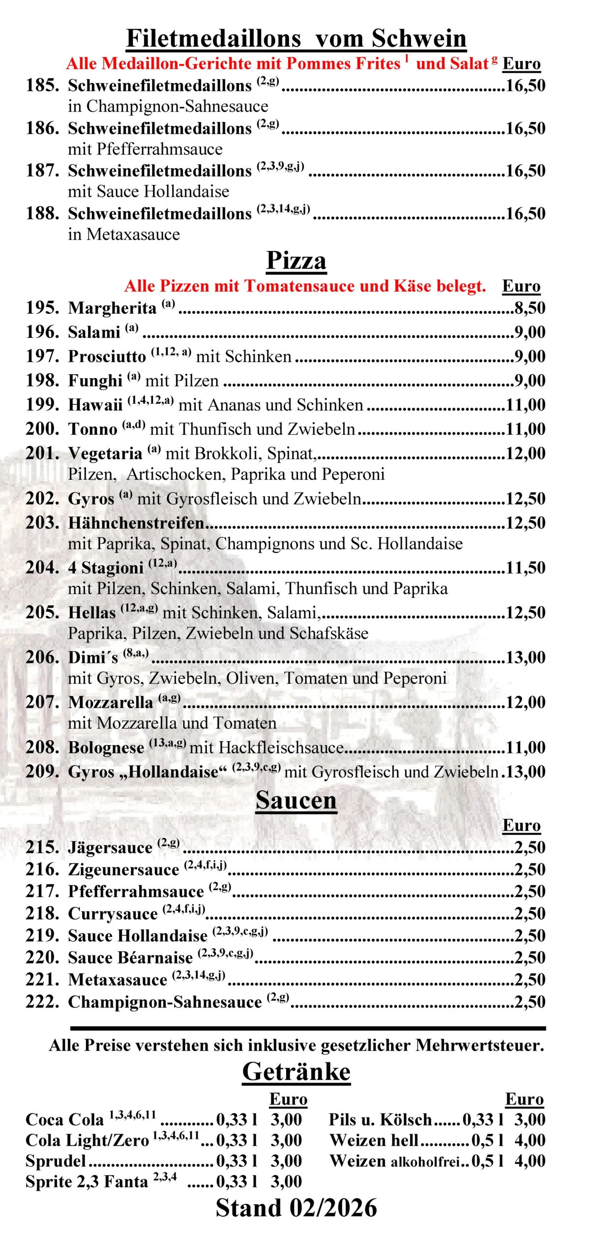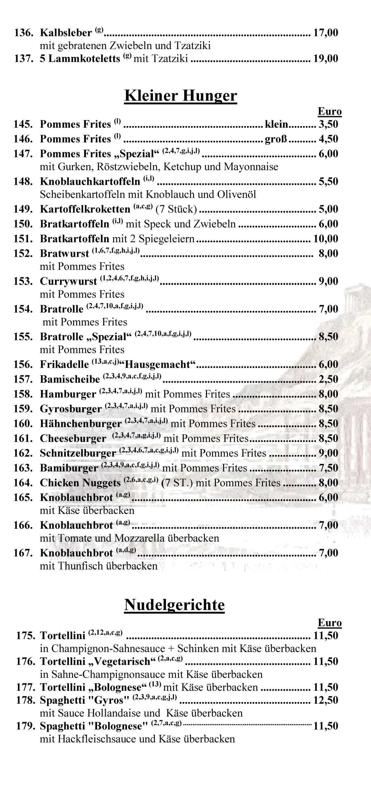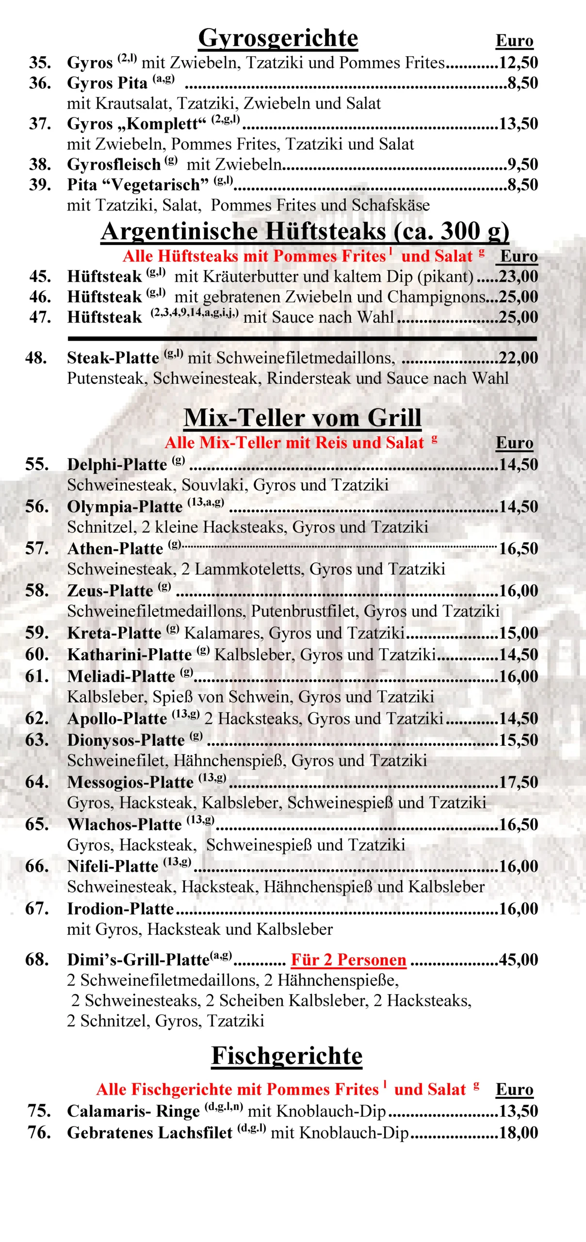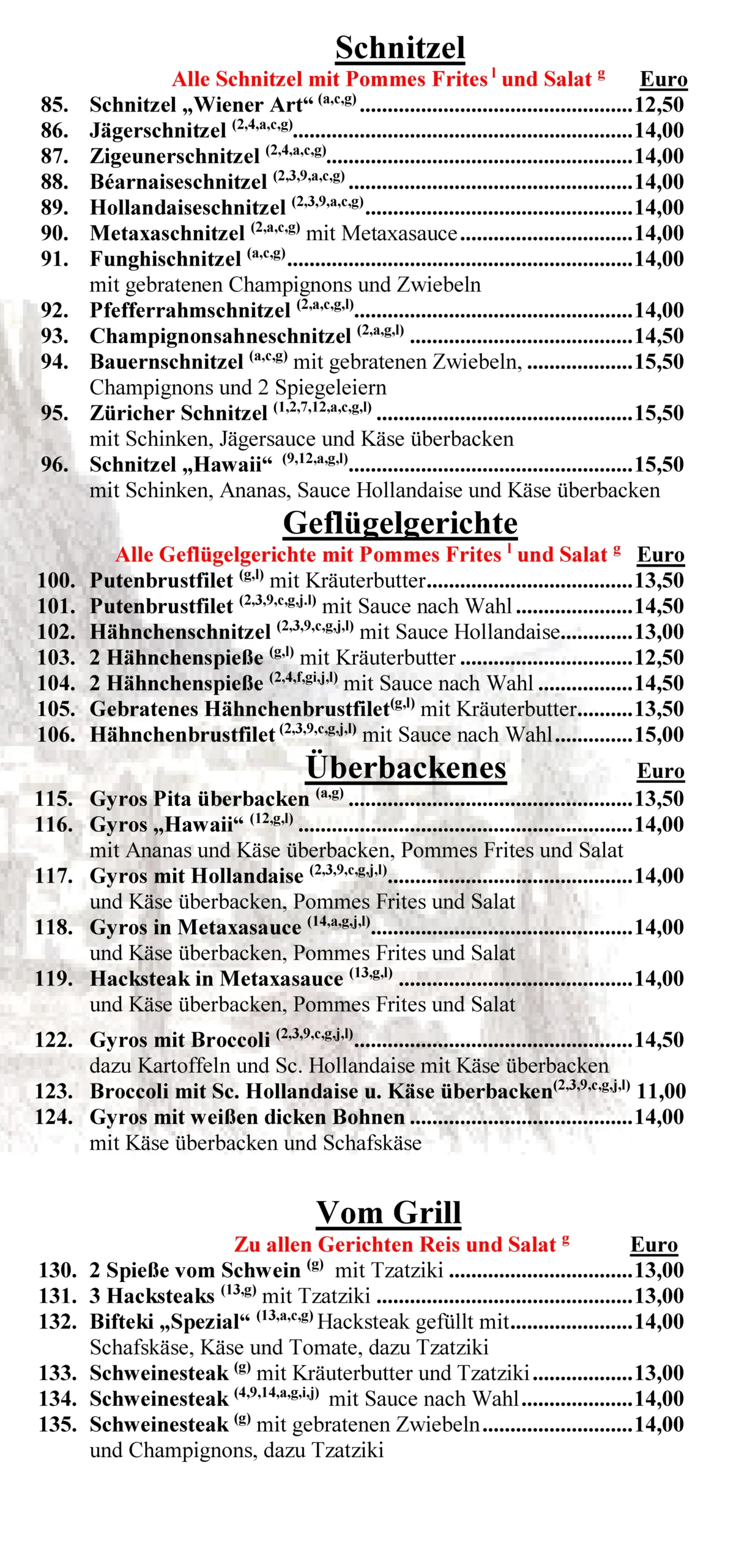 fast wieder komplette Speisekarte
